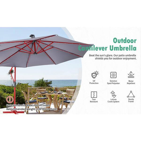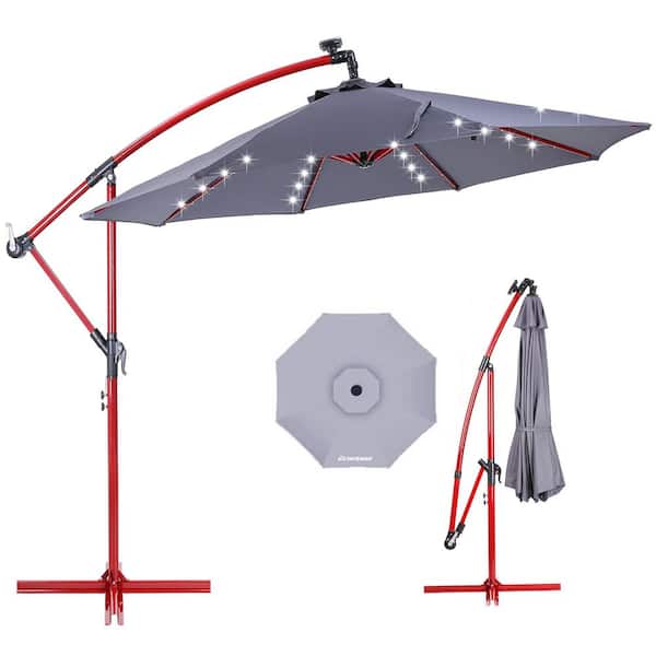 EchoSmile 10 ft. Fiberglass Cantilever Adjustable Canopy Tilt Solar Patio Umbrella in Grey and Red