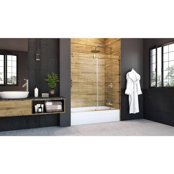 Eclipse 60 in. W x 60.5 in. H Frameless Bypass Sliding Tub Door in Brushed Gold with Clear Glass
