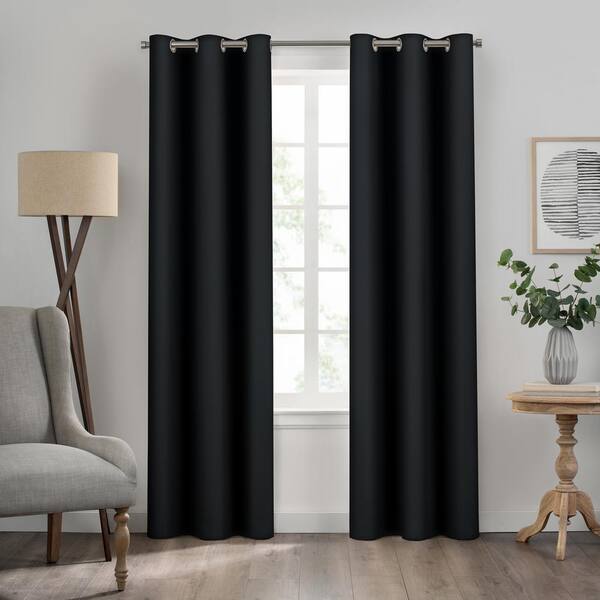 Kendall Thermaback Black Solid Polyester 42 in. W x 54 in. L Blackout Single Grommet Top Curtain Panel