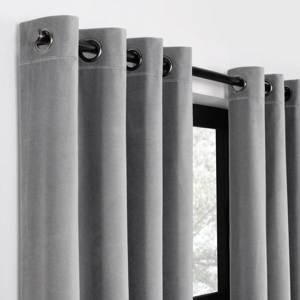 Luxury Cotton Velvet Dark Grey Solid Cotton 108 in. L x 50 in. W 100% Blackout Single Panel Grommet Curtain