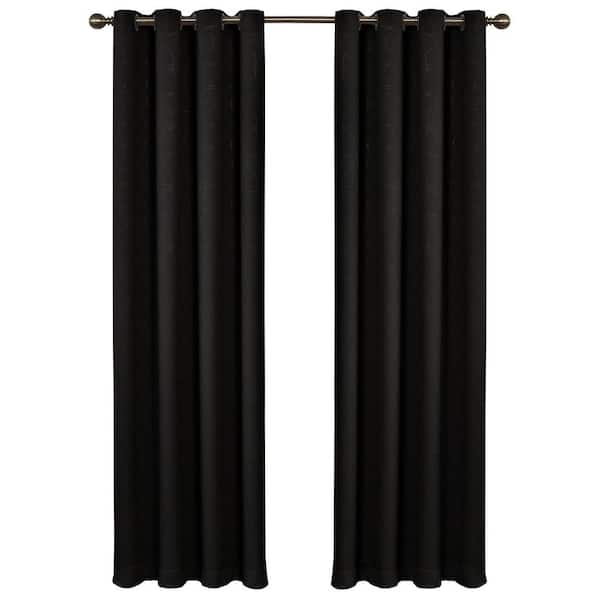 Round & Round Black Embossed Geo Pattern Polyester 52 in. W x 95 in. L Blackout Single Grommet Top Curtain Panel
