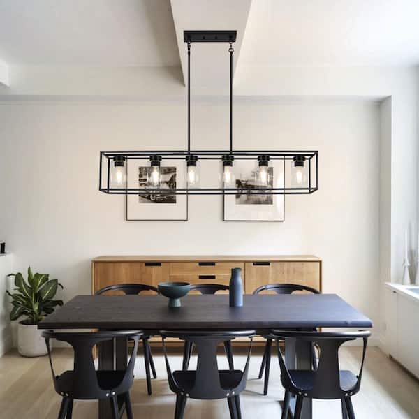 Eclipse Series 6 Light Chandelier Black Clear Glass Rectangular Chandelier for Dining Room with no bulbs included