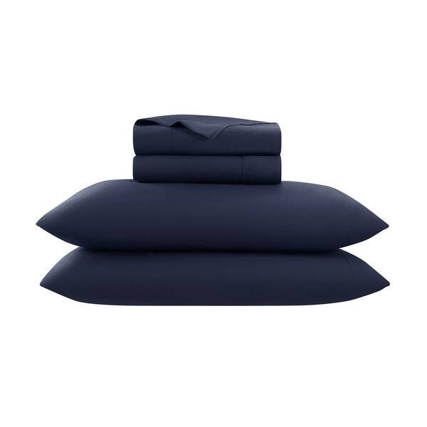 Sleep Solutions Plaza 4-Piece Peacoat Solid Polyester Queen Cooling Sheet Set