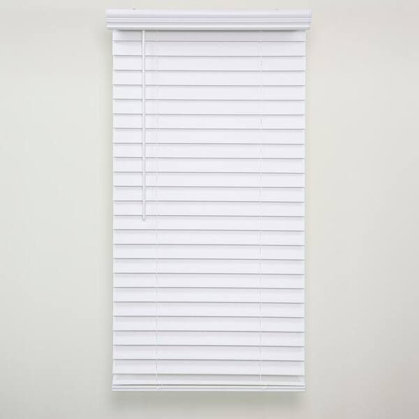 White Cordless Room Darkening Venetian Faux Wood Blinds with 2 in. Slats - 50.5 in. W x 64 in. L