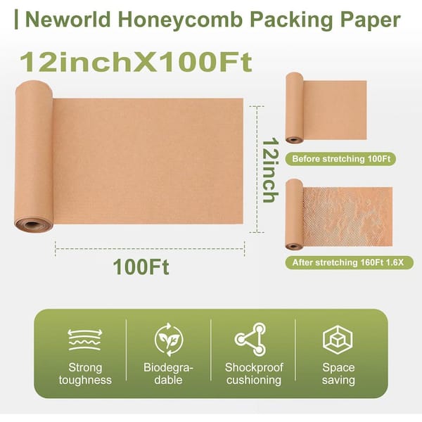 Eco Friendly Honeycomb Packing Paper 1200L x 12W Biodegradable Kraft Cushioning Wrap with 20 Fragile Stickers