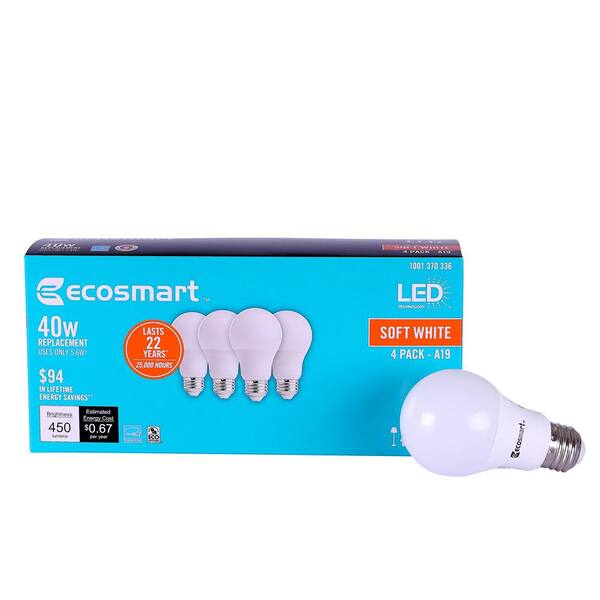 40-Watt Equivalent A19 Dimmable Energy Star LED Light Bulb Soft White (4-Pack)