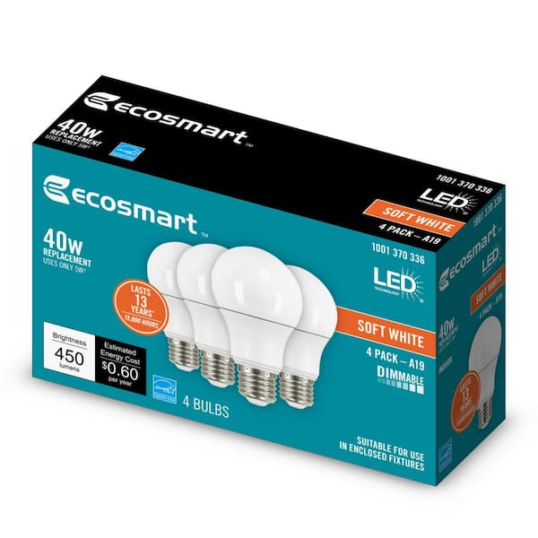 40-Watt Equivalent A19 Dimmable LED Light Bulb Soft White (4-Pack)