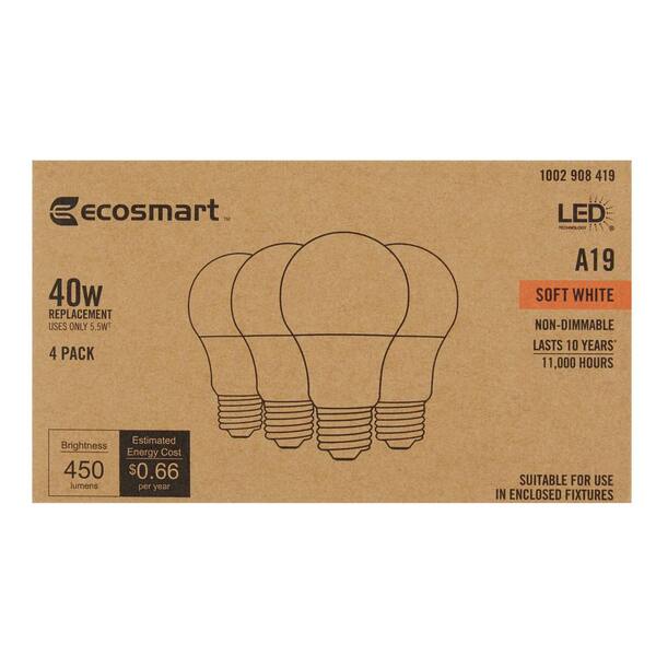 40-Watt Equivalent A19 Non-Dimmable LED Light Bulb Soft White (4-Pack)