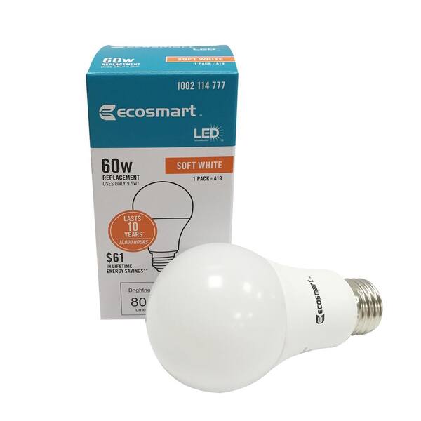 60-Watt Equivalent A19 Non-Dimmable LED Light Bulb Soft White