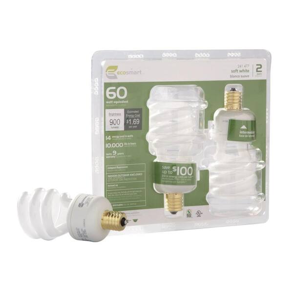 60-Watt Equivalent Spiral Non-Dimmable CFL Light Bulb Soft White (2-Pack)