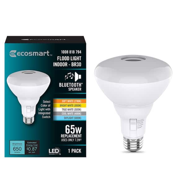 65-Watt Equivalent BR30 Reflector Dimmable Bluetooth Speaker LED Flood Light Bulb Adjustable White (8-Pack)