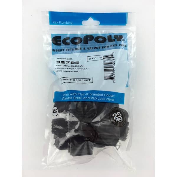 1/2 in. Plastic PEX Male Pipe Thread x 1/2 in. BSP Female Swivel 90-Degree Elbow (5-Pack)