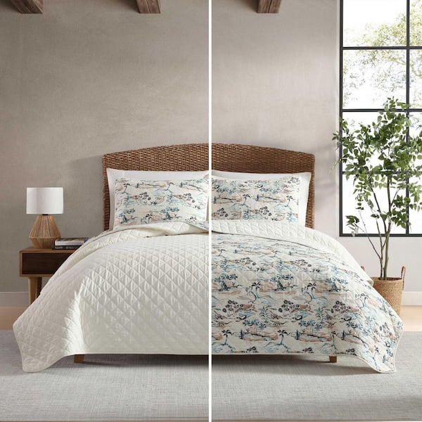 Alani Island Conversation 3 Piece Beige Cotton King Quilt Set