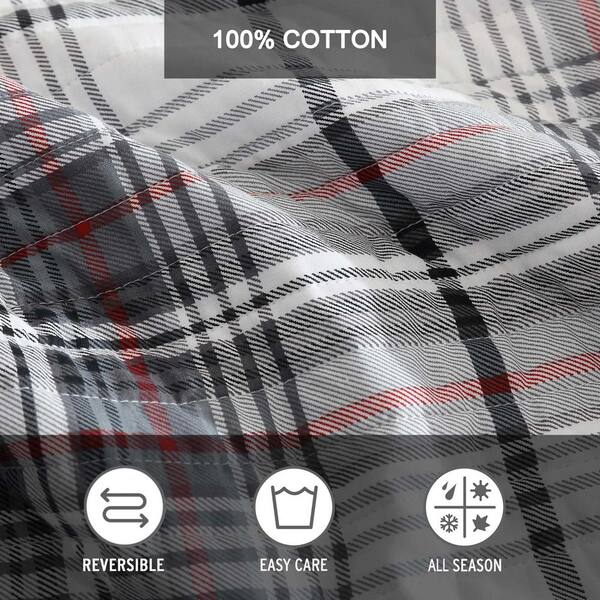 Alder Plaid Grey 3-Piece King Cotton Quilt-Sham Set