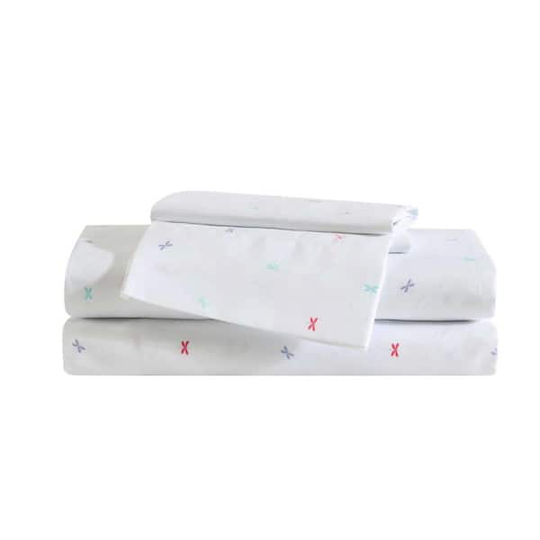 Dragonflies 3-Piece White/Pink/Blue Microfiber Twin Sheet Set