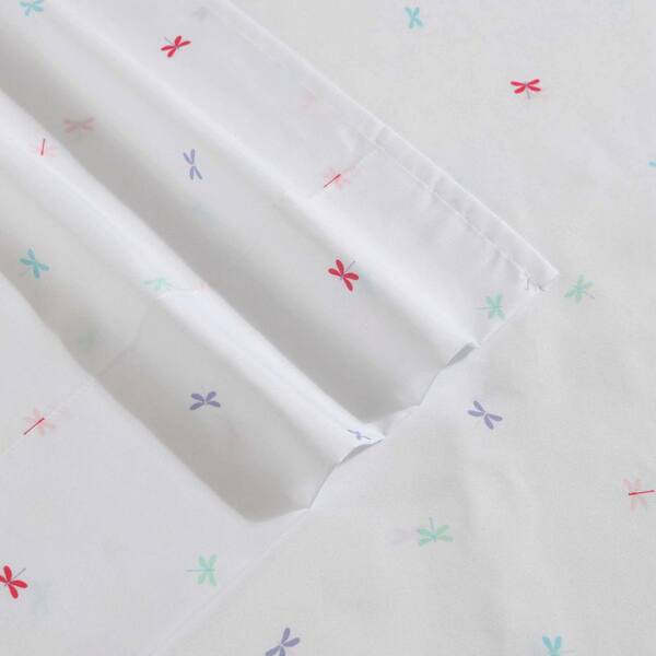 Dragonflies 4-Piece White/Pink/Blue Microfiber Full Sheet Set
