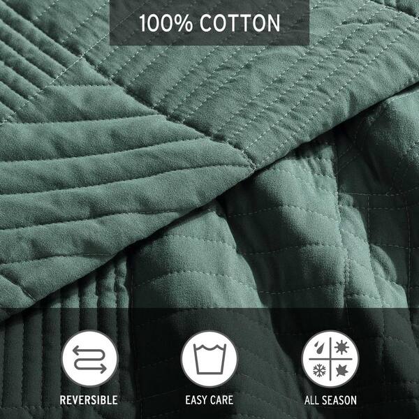 EB Solid Washed 3-Piece Evergreen/Brown Microfiber Full/Queen Quilt Set