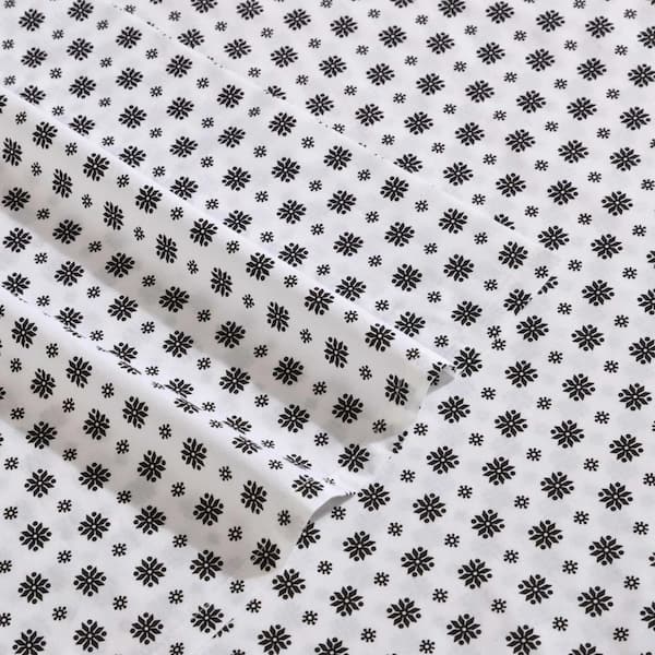 Fairisle Sprinkle 3-Piece White/Black Cotton Twin Sheet Set