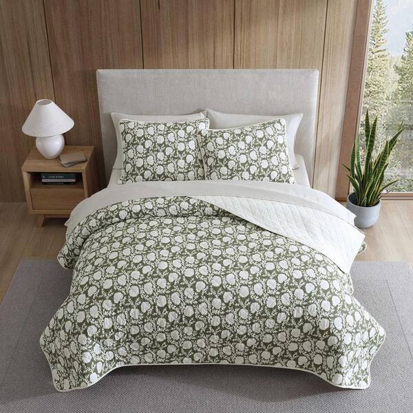 Garden Bloom 3-Piece Green Full/Queen Cotton Quilt Set