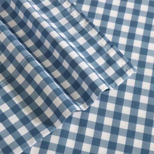 Preston Check 3-Piece White/Blue Microfiber Twin Xl Sheet Set