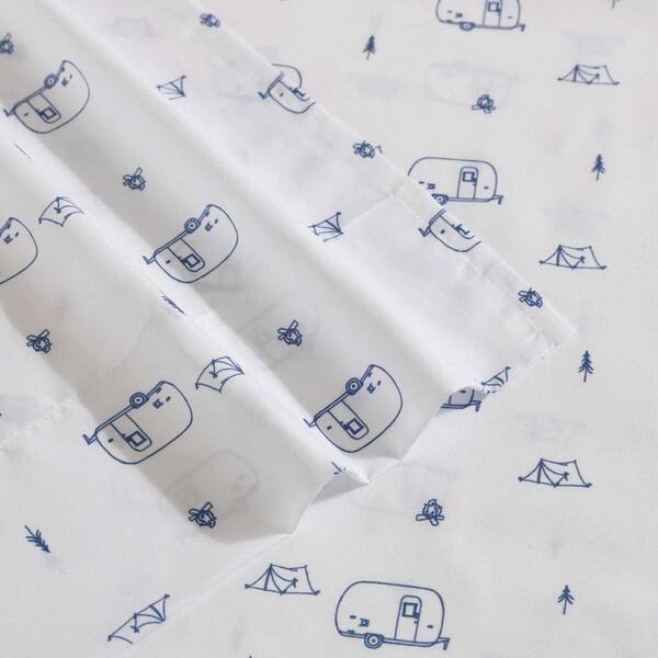 Travel Trailer Novelty 3-Piece White/Blue Microfiber Twin Xl Sheet Set