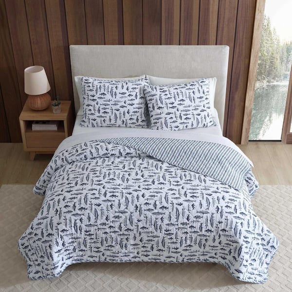 Wes Fish 3-Piece Blue King Cotton Quilt Set