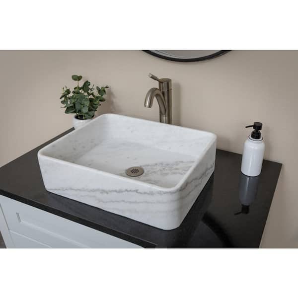 Thin Lip Guanxi Marble Rectangular Vessel Sink with Rounded Corners