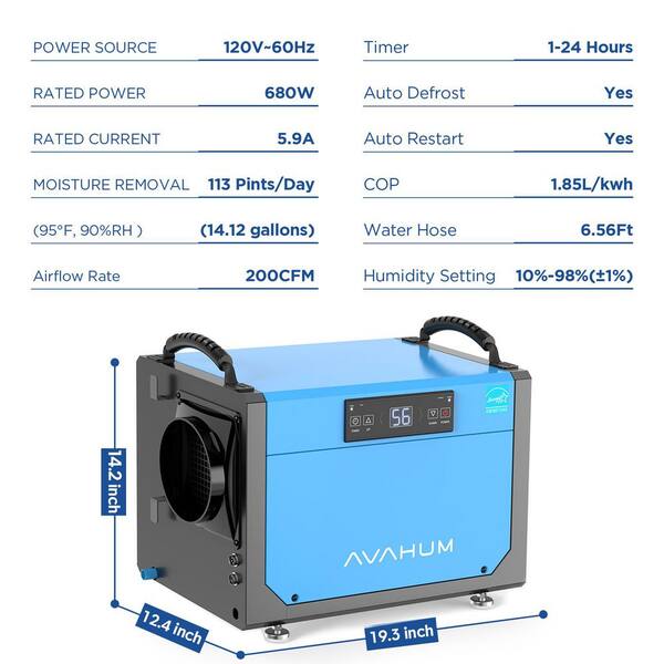 113 pt. 1,200 sq. ft. Bucketless Commercial Dehumidifier in Blue with Drain Hose for Crawl Spaces, Basements