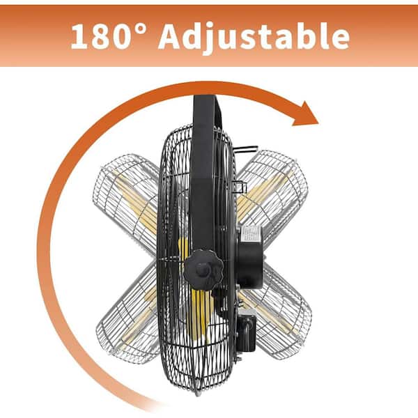 14 in. Yellow 3-Speeds Outdoor Wall Mounted Fan with IP44 Enclosure Motor, Sealed Control Box, GFCI Plug