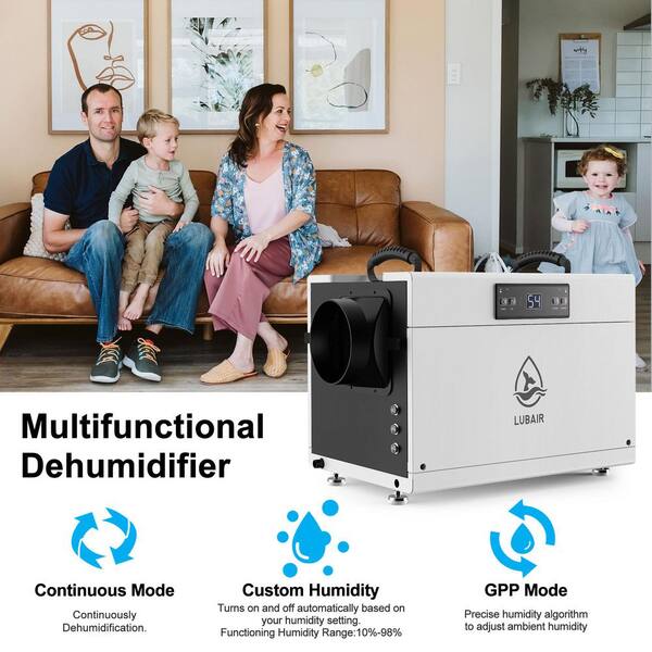 145 pt. 6000 sq.ft. Bucketless Commercial Dehumidifier in White with Drain Hose, Auto Defrost, Timer