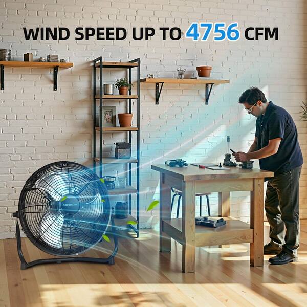18 in. 3-Fan Speeds High-Velocity Industrial Heavy Duty Metal Floor Fan in Black with Tilting Head