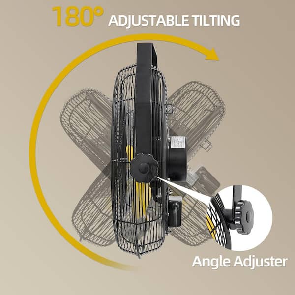 18 in. 3-Speeds High Velocity 4600 CFM Wall Mount Fan in Yellow with IP44 Enclosure Motor, 180 Tilting Oscillating