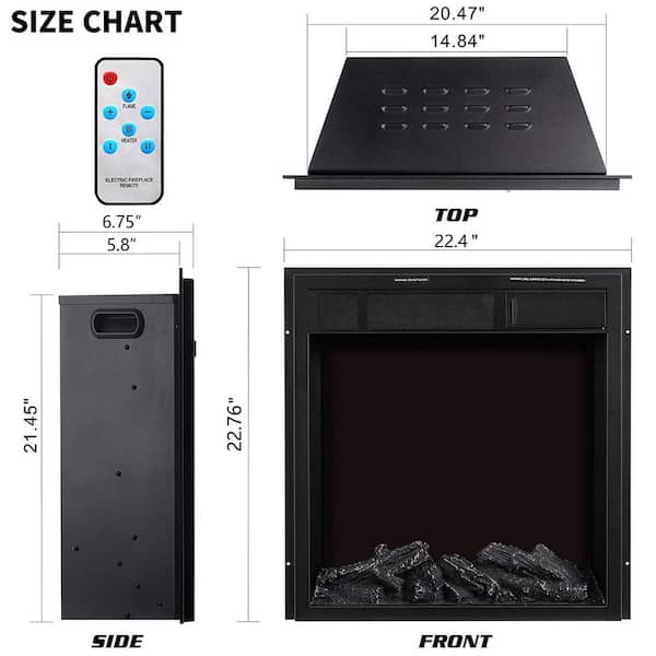 22.4 in. Ventless Electric Fireplace Insert, Remote Control, Adjustable Led Flame Brightness, 750-Watts/1500-Watts