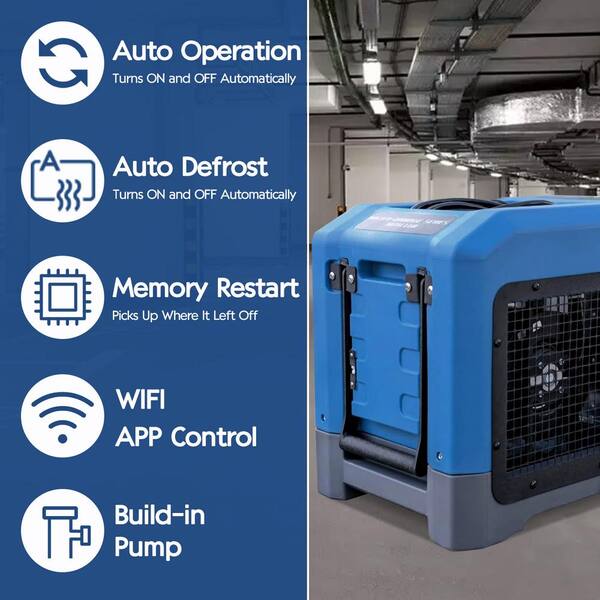225 pt. 2,600 sq. ft. Commercial Dehumidifier in Blue, Industrial Dehumidifier with Pump for Crawlspace, Basement