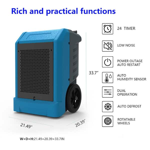 230 pt. 8,000 sq.ft. Bucketless Commercial Dehumidifier in Blues with Pump, Drain Hose for Basement and Garage