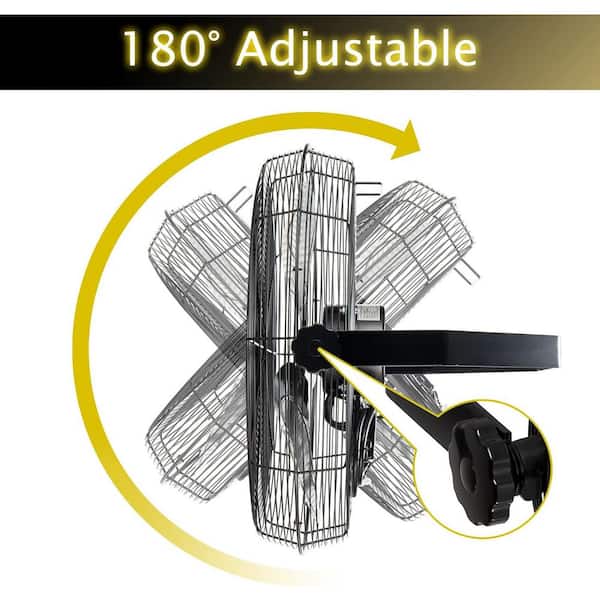 24 in. 2 Speeds Wall Fan in Yellow with Permanent Lubricated Ball Bearing, 180° Tilting