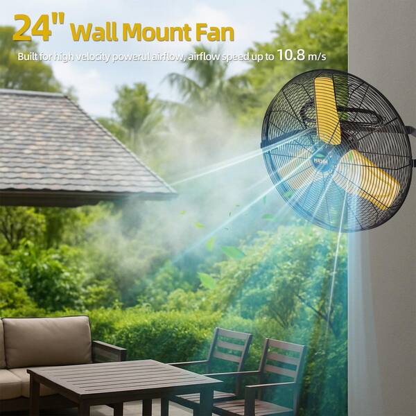 24 in. 2 Speeds Wall Fan in Yellow with TEAO Enclosure Motor, Permanent Lubricated Ball Bearing, 180-Degree Tilting