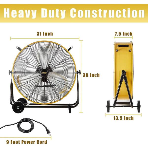 24 in. 3 Fan Speeds Drum Fan in Yellow, Turbo Blade with Powerful 1/3-HP Motor
