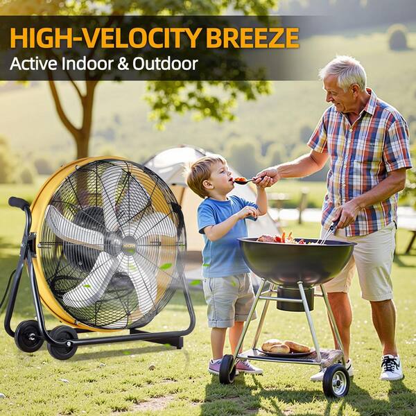 24 in. 3 Speeds High Velocity Internal Oscillating Barrel Floor Fan in Yellow with Powerful 1/4 Motor