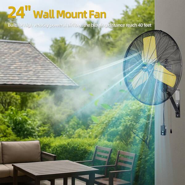 24 in. 3-Speeds Outdoor Wall Mounted Fan in Yellow with IP44 Enclosure Motor, Sealed Control Box, GFCI Plug