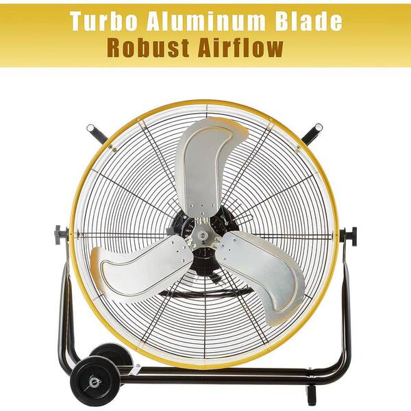 24 in. Industrial Drum Fan 8800 CFM High Velocity 3-Speed Heavy Duty Metal Air Circulator with Casters Handle, Yellow