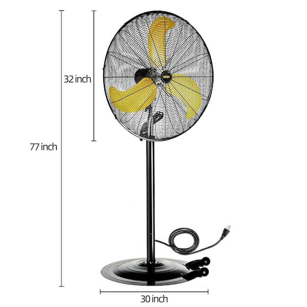 30 in. 3 Fan Speeds Pedestal Oscillating Fan in Yellow with Wheels, Adjustable Height Commercial or Industrial Fan