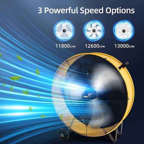 30 in. Heavy Duty High Velocity Barrel Floor Drum Fan With Powerful 1/3HP Motor, Commercial or Industrial Fan in Yellow