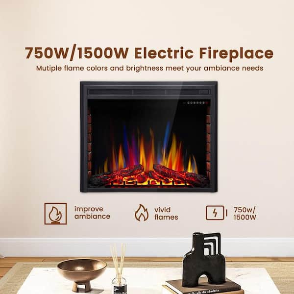 36 in. Ventless Electric Fireplace Insert, Remote Control, Adjustable Led Flame Brightness, 750-Watt/1500-Watt