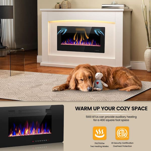36 in. Wall Mount Metal Electric Fireplace in Black, with Remote, Low Noise, 750w/1500w Heating Mode, ETL Certified