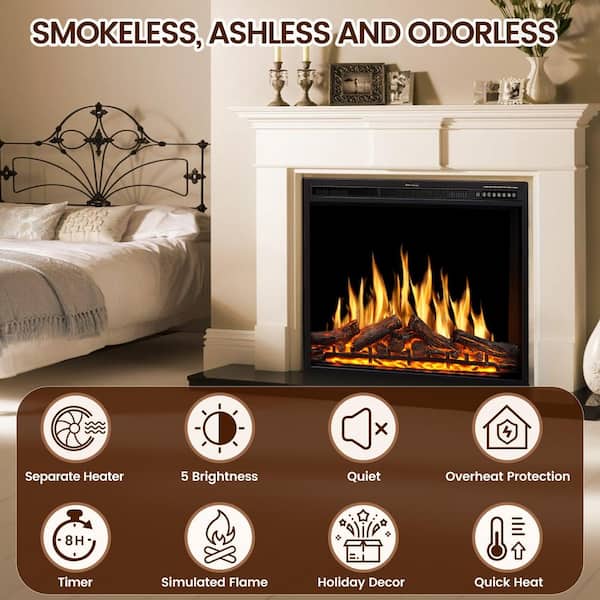 37 in. Ventless Electric Fireplace Insert, Remote Control, Adjustable Led Flame Brightness, 750-Watts/1500-Watts