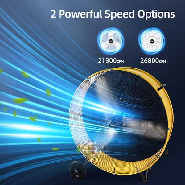 42 in. 2 Fan Speeds Drum Fan in Yellow with Handle and Wheels, Industrial Fan