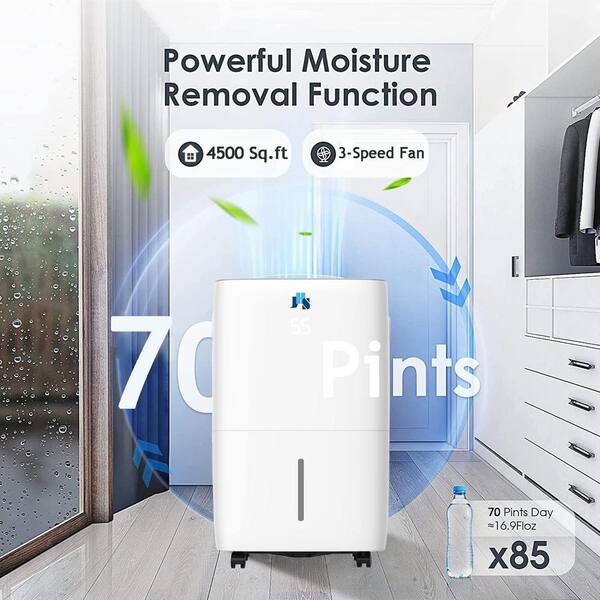 50 pt. 4500 sq.ft. Residential Dehumidifier in. white, 24 Hours Timer, Child Lock, Auto Power Off, With Pump Drain