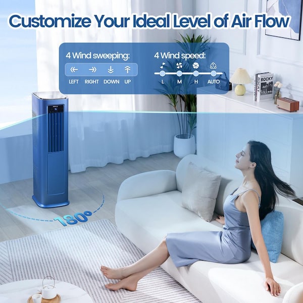 7,800 BTU (DOE) 7,00 Sq. Ft. Portable Air Conditioner Cools and 1100W Heater with Remote in Blue, Over Heat Protection