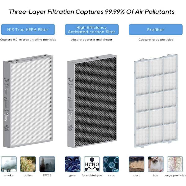 Air Purifier Replacement Filters,3-in-1 True HEPA H13,for Allergies, Dust, Pollen, smoke, wildfire, Dander,1 Set 2 PCS